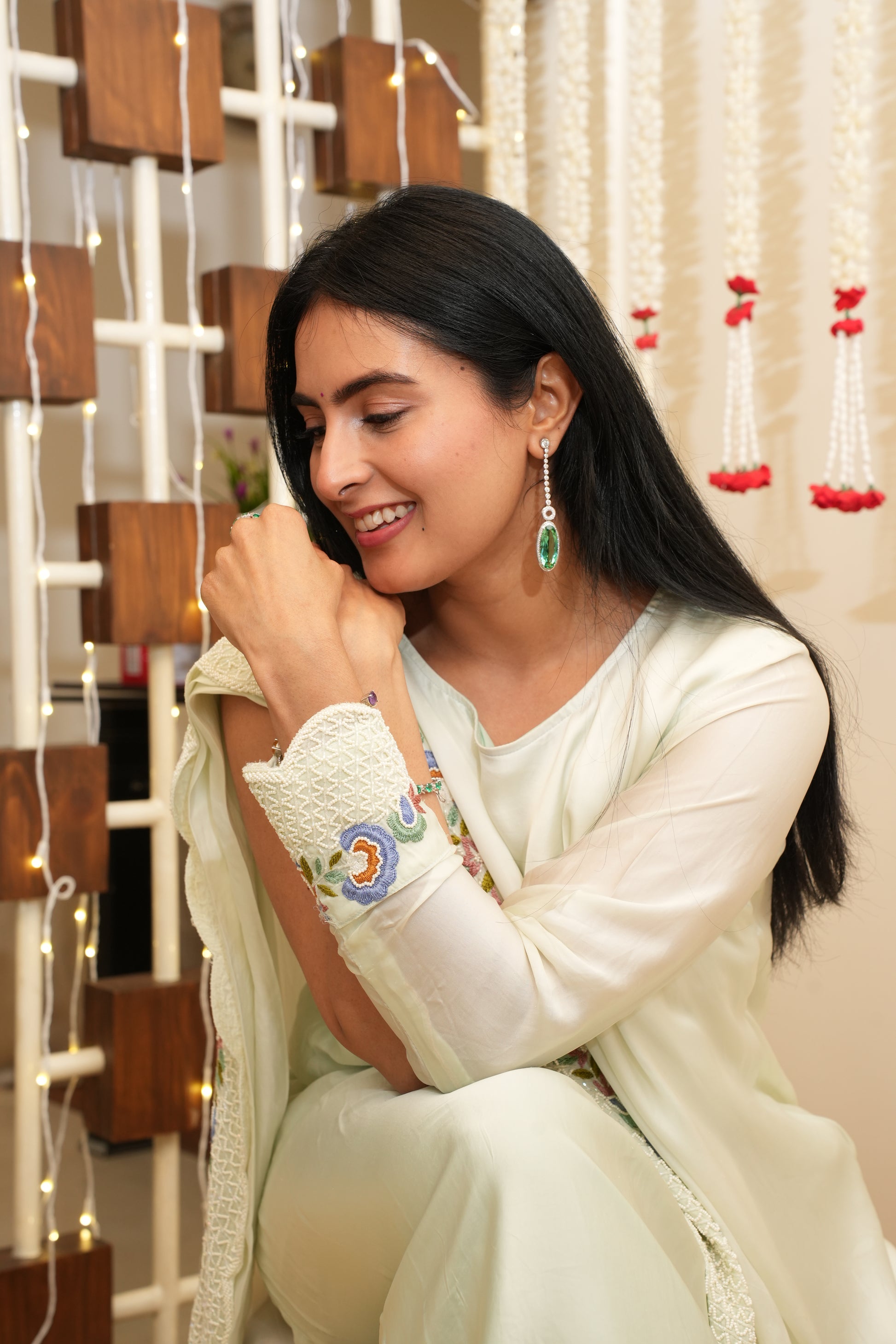 Defined by vivid green stones and refined silhouettes, the collection brings together circular blooms, cascading drops, and statement cuts. Each Piece is designed to complement festive occasions, adding a touch of sophistication and depth to every look.