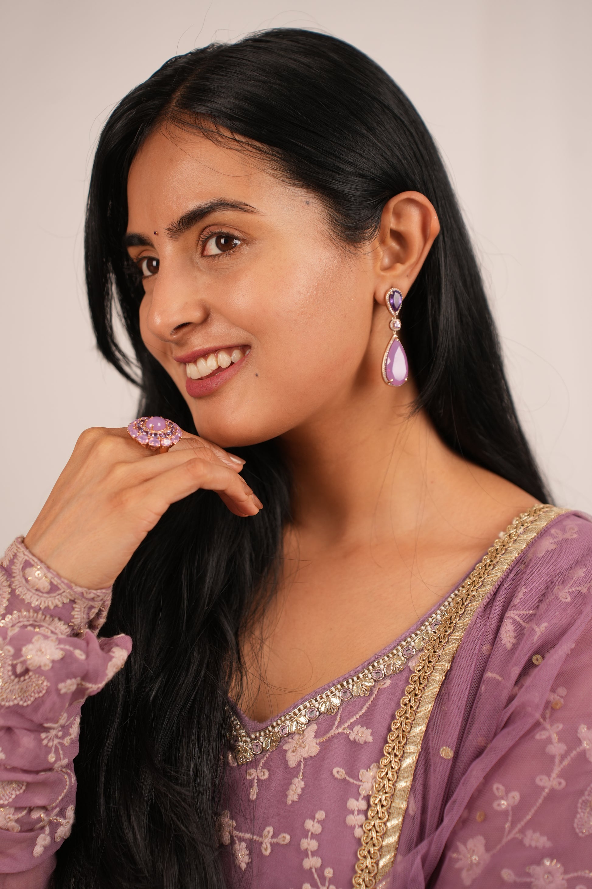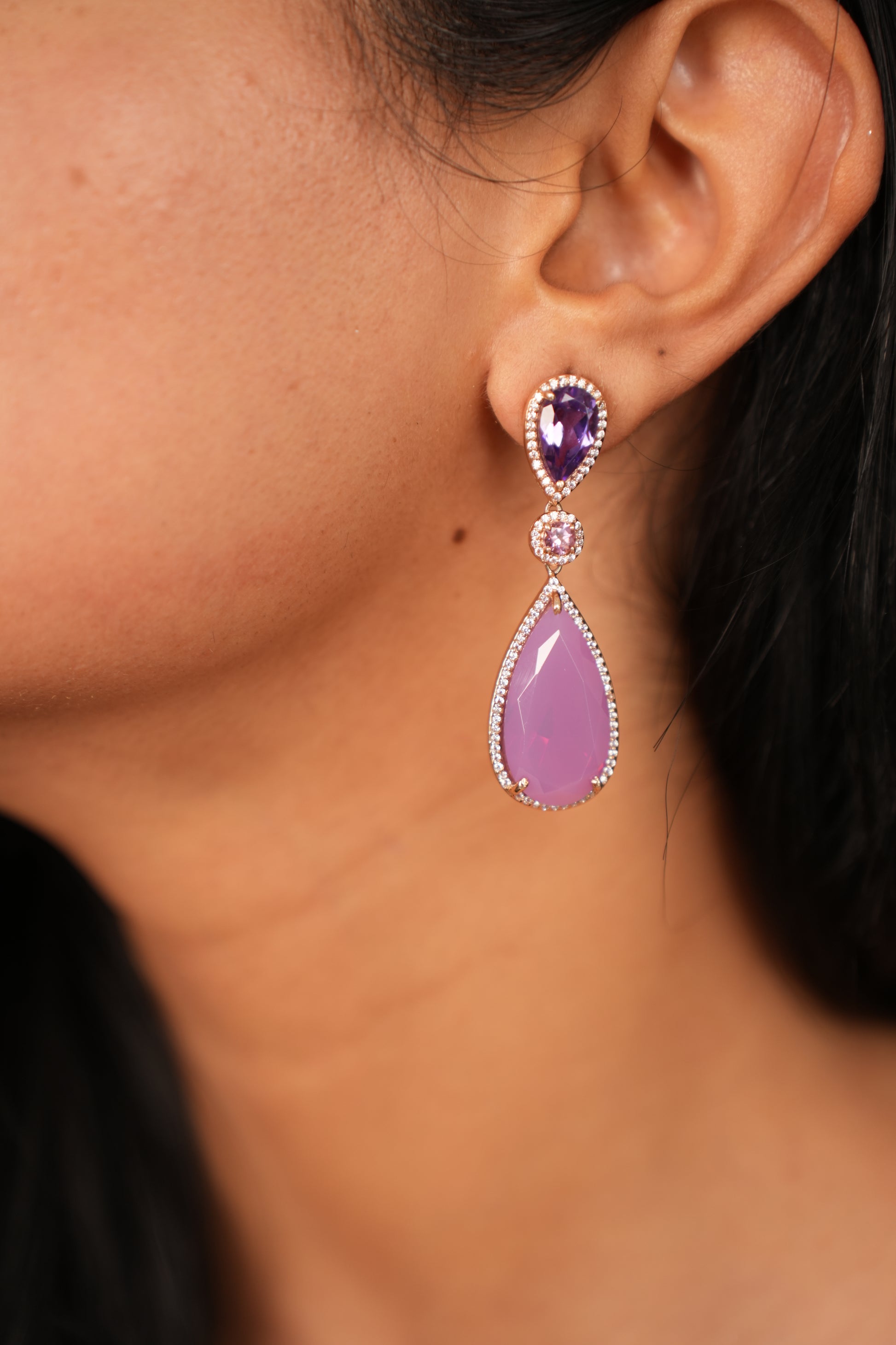 Gemstones: Purple Amethyst and Pink Quartz with AAA American Diamond