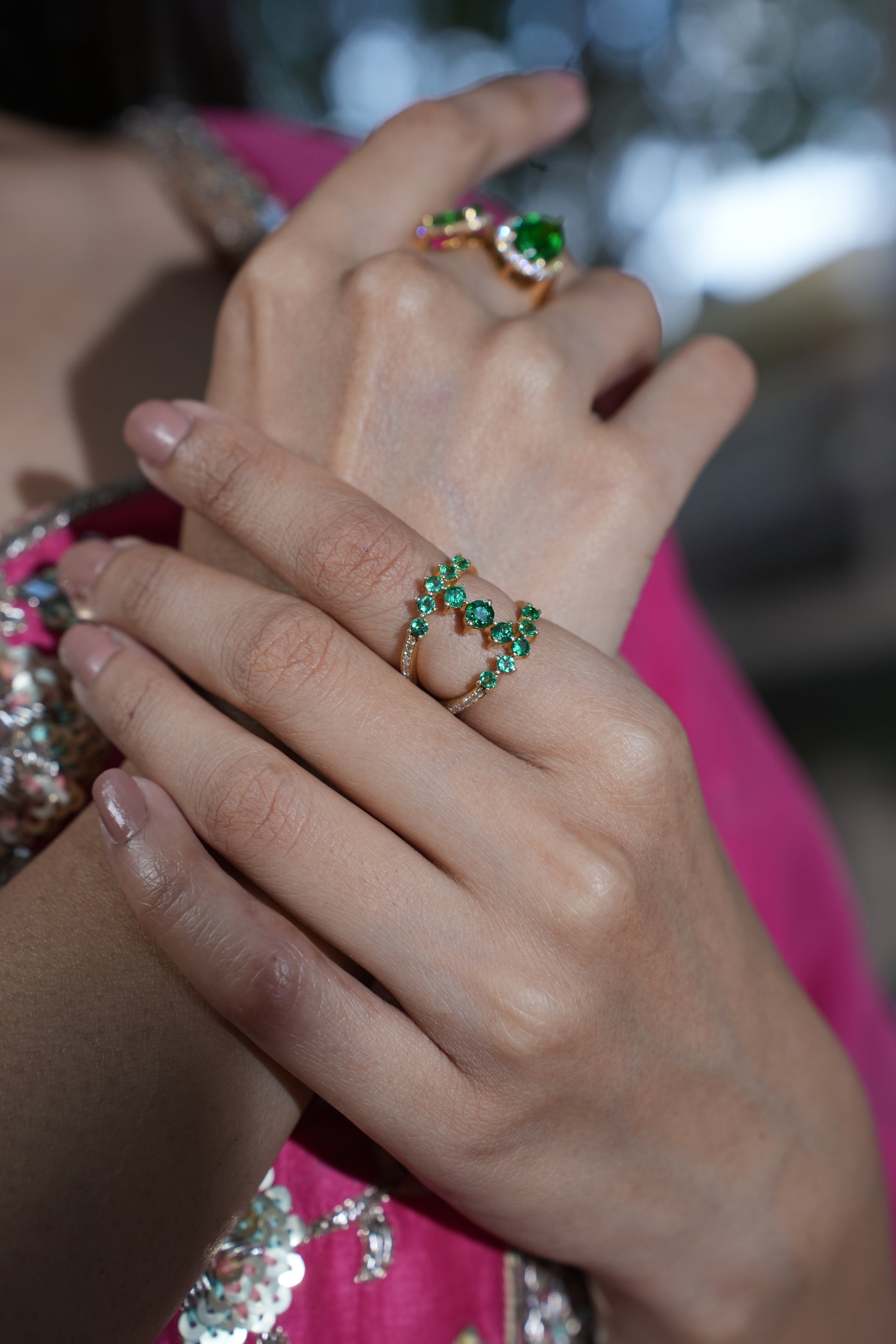 Defined by vivid green stones and refined silhouettes, the collection brings together circular blooms, cascading drops, and statement cuts. Each Piece is designed to complement festive occasions, adding a touch of sophistication and depth to every look.