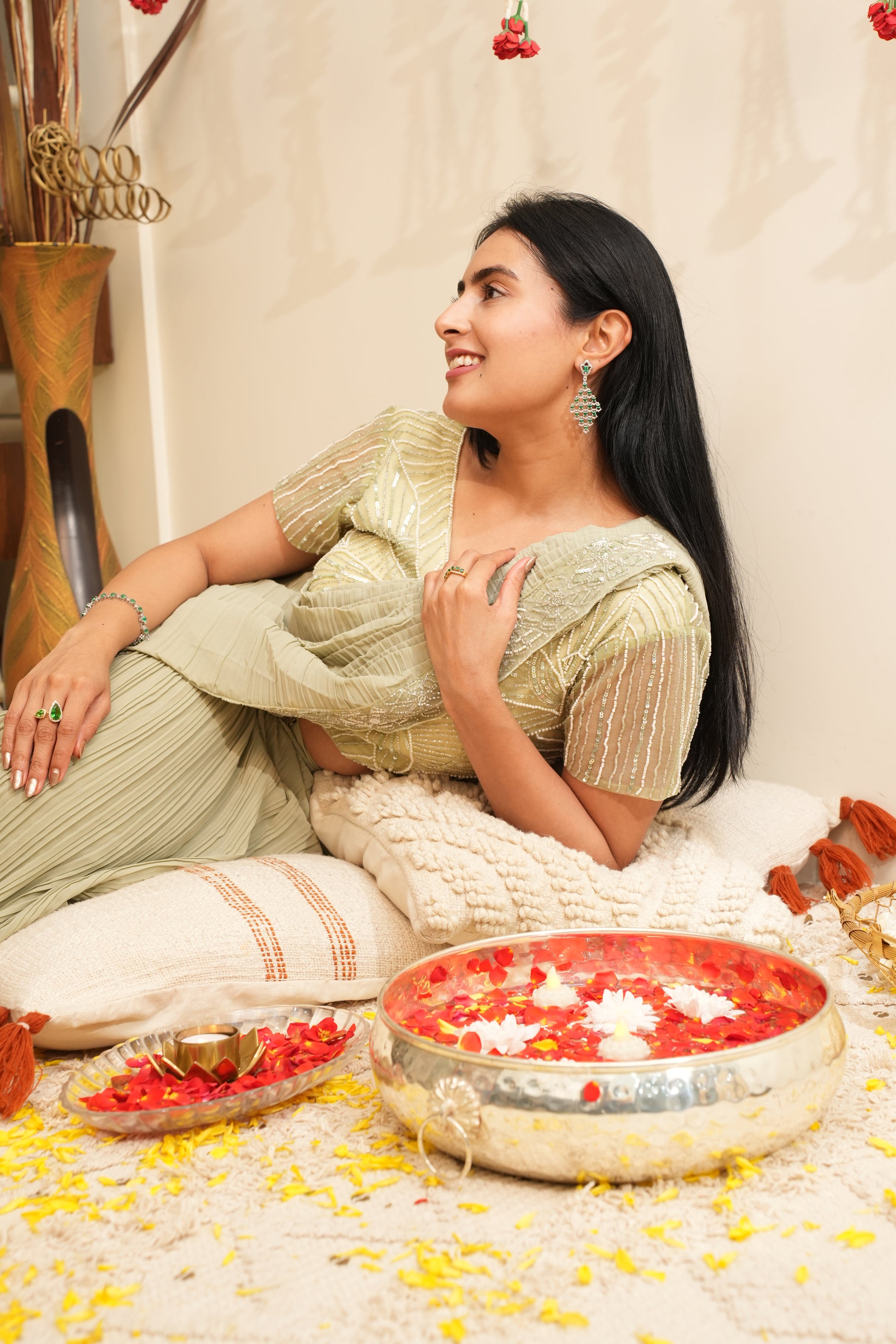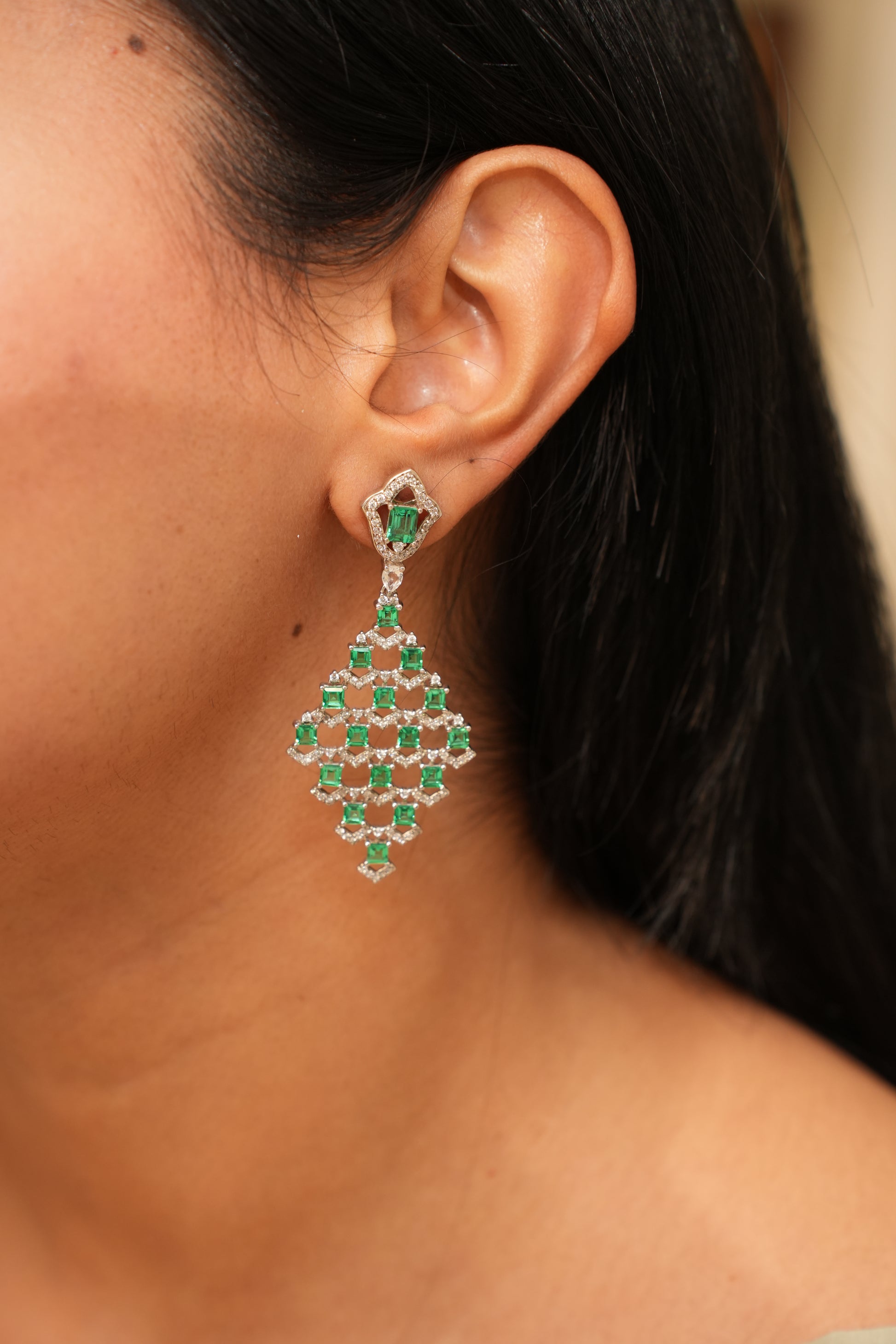 Defined by vivid green stones and refined silhouettes, the collection brings together circular blooms, cascading drops, and statement cuts. Each Piece is designed to complement festive occasions, adding a touch of sophistication and depth to every look.