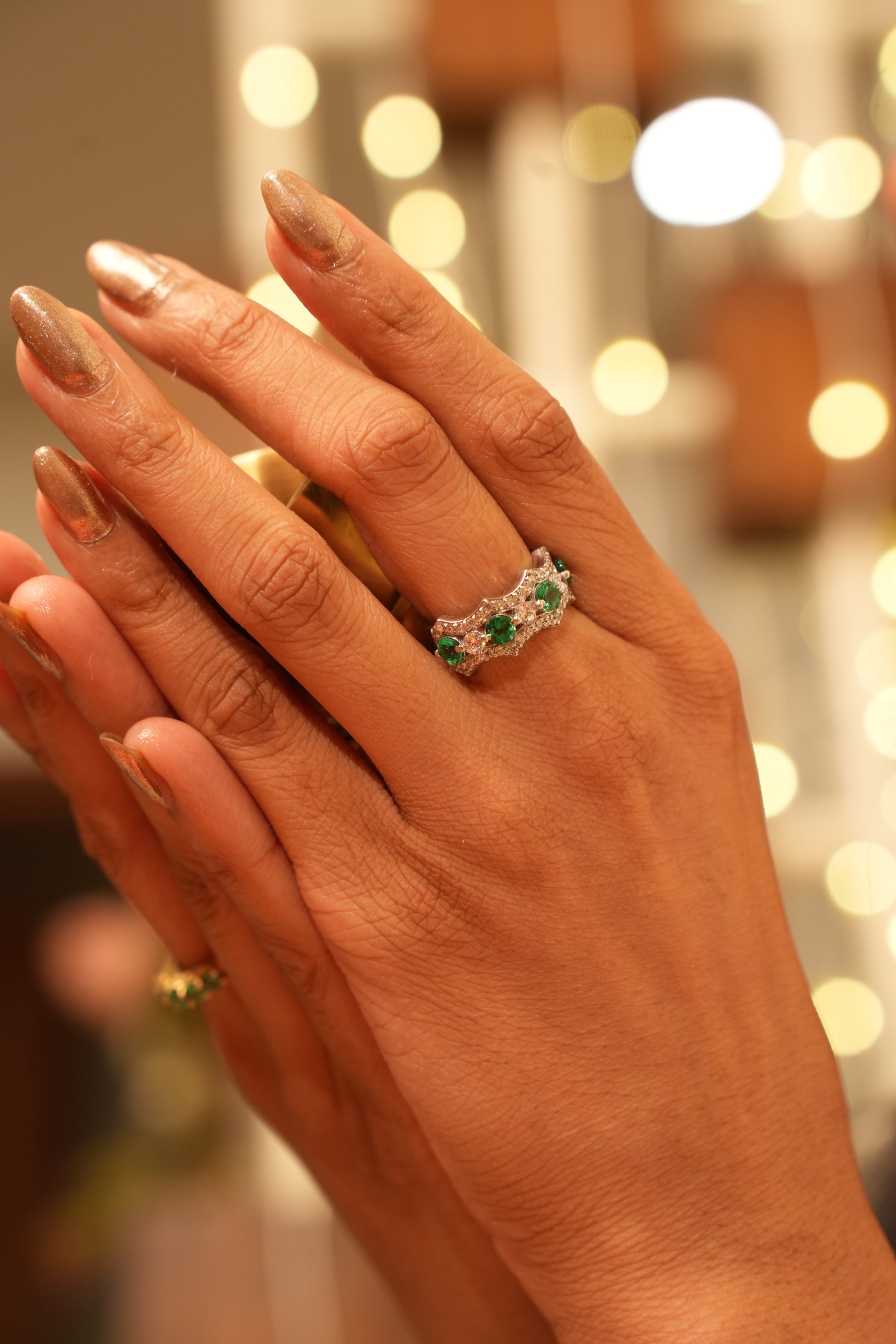 Defined by vivid green stones and refined silhouettes, the collection brings together circular blooms, cascading drops, and statement cuts. Each Piece is designed to complement festive occasions, adding a touch of sophistication and depth to every look.